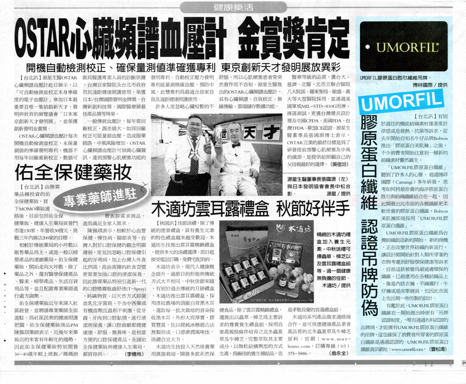 最新消息 > 新聞稿 2026.03.09 十年創新迷思之後 紡織產業正走向何方? 2024.10.24 Seni news article of UMORFIL.® 2022.04 A winning ingredient from fish waste 2022.04 UMORFIL.® Bionic Fiber makes you feel more 2021.09.15 首屆「清真產品臺灣週」展示上百品項 助攻出口 2020.02.05 [繊維ニュース] UMORFIL®相關主題系列報導 2019.12.11 サバヒーのうろこから新素材 台湾・繊維イノベーション (本篇文章已獲得NNA許可刊登於本網站) 2019.08.19 UMORFIL®優膚美® 所有權聲明書 2019.04.17 UMORFIL®優膚美®參與天絲TencelTM x 台灣藍鵲茶 紡出真茶香 品茗活動 2019.01.28 UMORFIL®優膚美®仿生纖維®受邀2018-2019臺中世界花卉博覽會展出 2018.09.18 [財訊專訪] 侯二仁把魚鱗變衣料 國際品牌搶下單 2018.08.20 [TVBS報導] 廢棄魚鱗變纖維原料 LVMH集團都採用 2018.08.06 台南紡織業綠實力─廢棄魚鱗變身機能纖維 2018.07.25 [Weeknight 雜誌專訪] 台灣紡織業的科技性未來 2017.10.12 TAIWAN TATLER雜誌 10月報導-道地台南人的擔仔麵哲學!博祥國際總經理侯二仁發揚府城精神 2017.08.16 英國雜誌Twist 9月主題報導 [Diverse appeal] 2017.05.03 Performance Days 2017 系列報導:UMORFIL® 美膚纖維® 生物可分解性專題報導 2016.11.23 [三立財經台] 魚鱗DNA變仿生纖維 侯二仁成第一人 2016.10.21 今週刊報導10月報導-博祥國際魚鱗織成布,紅到米蘭世博 2016.10.20 2016 TITAS台北紡織展 仿生纖維UMORFIL® 2016.10.14 2016 風格臺南∙創意時尚展 FUTURE IS NOW 打造在地府城時尚新風貌 2016.08.24 英國雜誌Twist 9月主題報導 [Natural choice] 2016.01.28 英國雜誌 [Twist] 專訪 2015.12.24 柯市長親臨博祥國際參訪 鼓勵紡織傳產創造藍海市場 2015.12.14 [中時電子報] 魚鱗變衣料 膠原蛋白穿上身 2015.10.19 UMORFIL® 美膚纖維® 在2015 TITAS 台北紡織展 2015.07.07 UMORFIL® 美膚纖維® 在米蘭世博展出, 刊載於法國 Intima Magazine 雜誌報導 2015.05.12 UMORFIL® 美膚纖維® 參與米蘭世博TEXTIFOOD展覽系列報導 2015.04.27 誠摯邀請您來米蘭世博參觀UMORFIL® 美膚纖維® 的特展! 2015.03.21 【工商時報】侯二仁把魚鱗變纖維 開闢紡織藍海 2014.08.21 【經濟日報】UMORFIL® 膠原蛋白纖維 認證吊牌防偽 2014.07.12 【不只美膚,加倍呵護】HMTM和明織品文化館開幕,推出Pachy Sandra膠原蛋白系列,採用UMORFIL膠原蛋白纖維 2013.09.20 【蘋果日報】BOBSON推出冬季新款-革命性丹寧『膠原蛋白美肌褲』,穿著就能享受的滋潤保濕! 2013.04.26 BOBSON正式推出膠原蛋白美肌褲引爆2013春夏新話題 2013.03.27 2013 BIFF&BIF曼谷時尚展 UMORFIL® 參展直擊報導!